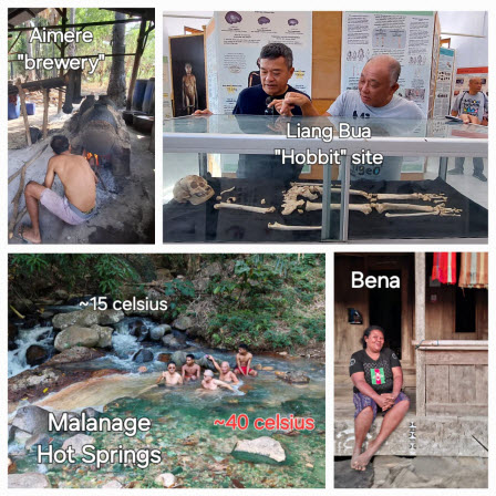 DAY 3 RUTENG-BAJAWA (135KM) Begin your adventure at Liang Bua, the famous Hobbit Cave, where you can explore the archaeological site and learn about its fascinating history. Next, visit Aimere, famous for its local liquor. A stop at a brewery lets you witness the traditional distillation process and enjoy sampling the unique beverages. Continue on to the traditional Bena village, immersing yourself in the rich culture and customs of the Ngada people, with stunning traditional houses set against picturesque landscapes. Finally, unwind at Malanange Hot Springs, a unique spot where the cold river meets the hot spring waters, creating a delightful experience of warm and cool temperatures. This road trip beautifully combines culture, history, and relaxation, making your journey to Bajawa truly memorable. Overnight Bajawa Hotel(B)